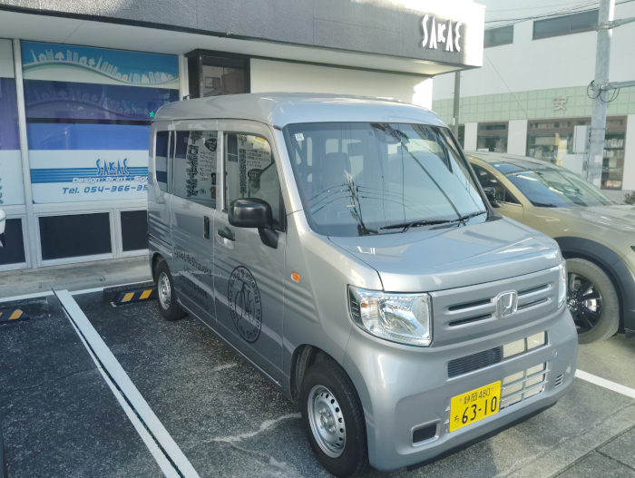 ここ静岡では自転車の出張修理という業態があまり認知されていないようで…そもそも出張修理を主に行う業者が皆無に近い…せっかく街中を走り回るのだから車に看板を背負わせてしまおうという訳です。