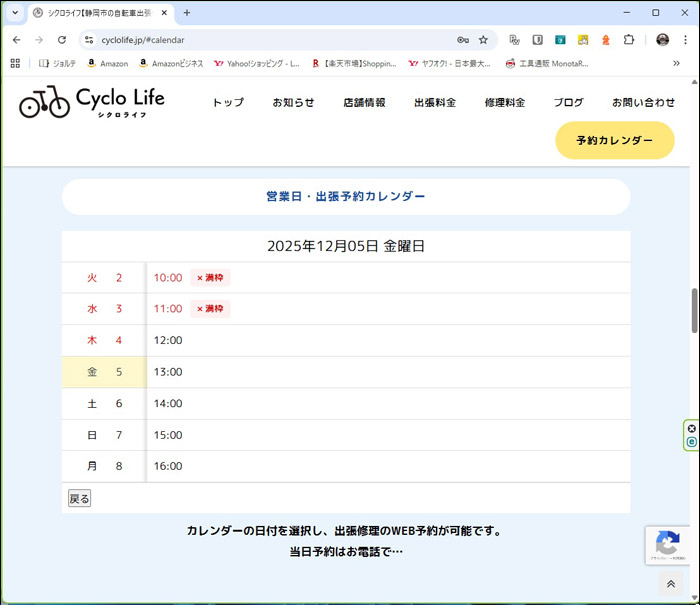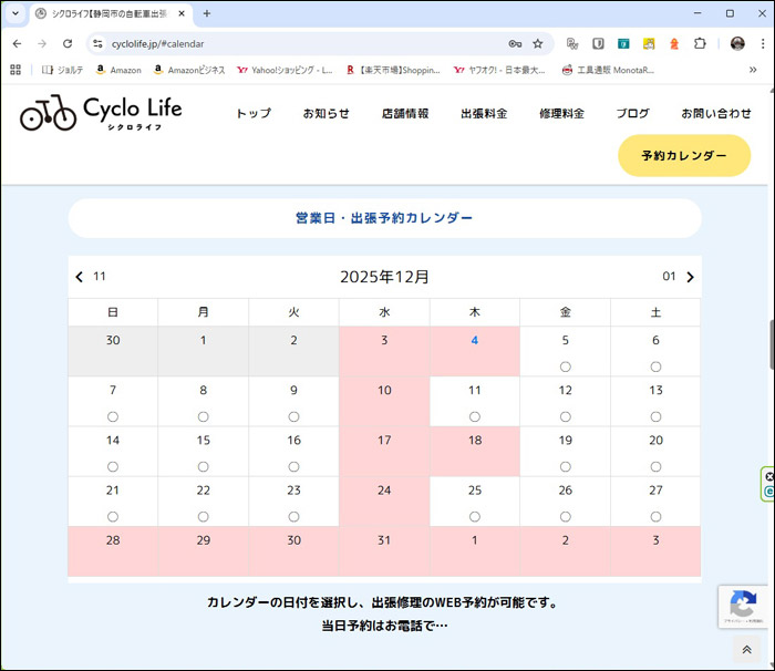 サイト内に組み込んである「予約カレンダー」ですが、これまで無料のシステムを利用して運用していましたが、新たにシステムを組んだ上で改修を行いました。